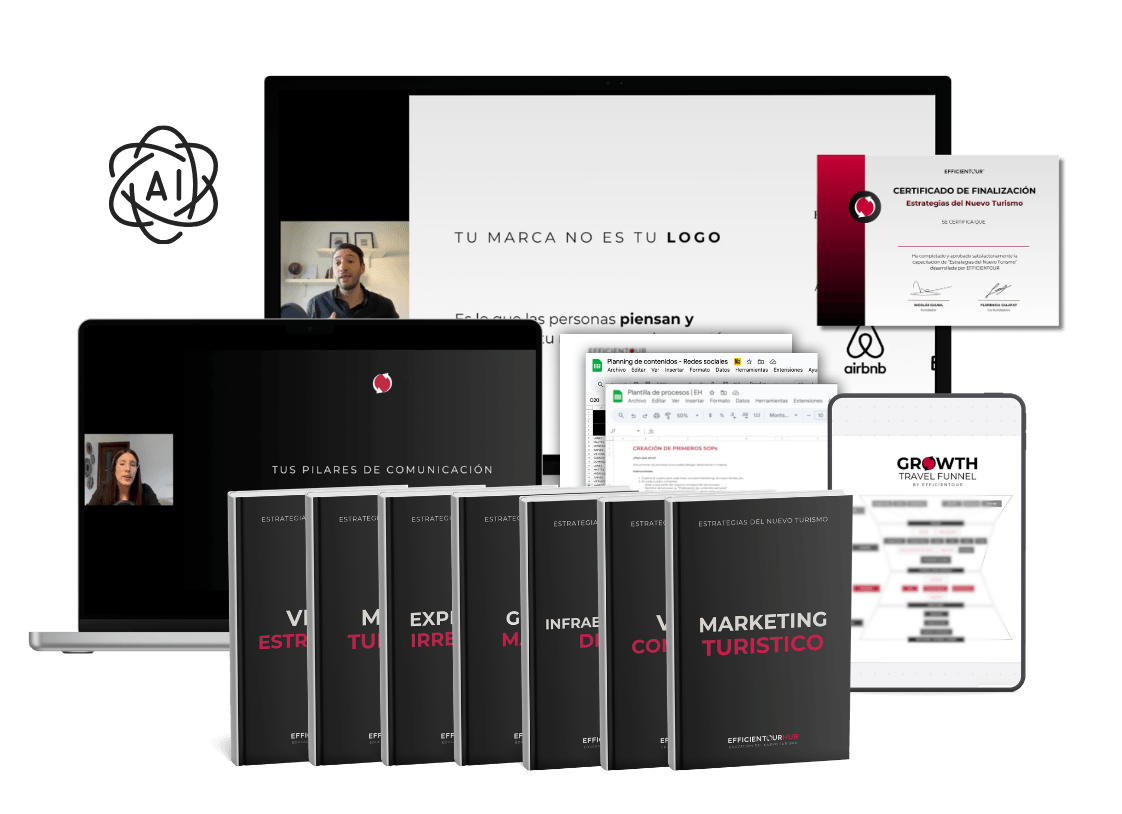 No. El EFFICIENTOUR HUB no es un pack de cursos que compras y luego tienes que arreglártelas solo. Tampoco es una membresía que hace el trabajo por ti y genera dependencia.
